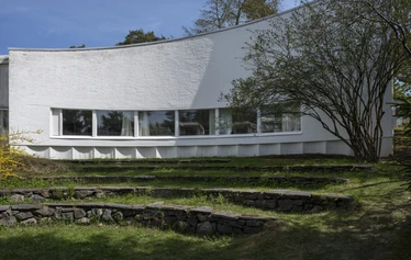 アアルトのアトリエは、アルヴァ・アアルトの設計事務所の新たな活動拠点として、1955年に完成しました。50年代はアアルトの設計事務所の全盛期にあって、増⼤する設計依頼のためにオフィスにより広い作業スペースを必要としていました。建物はそれまで設計事務所が併設されていたアアルトの⾃邸から徒歩圏内にあります。真っ⽩なアトリエの建物で、数々の名作が⽣み出されました。アアルトのアトリエは、アルヴァ・アアルト50年代の代表作です。